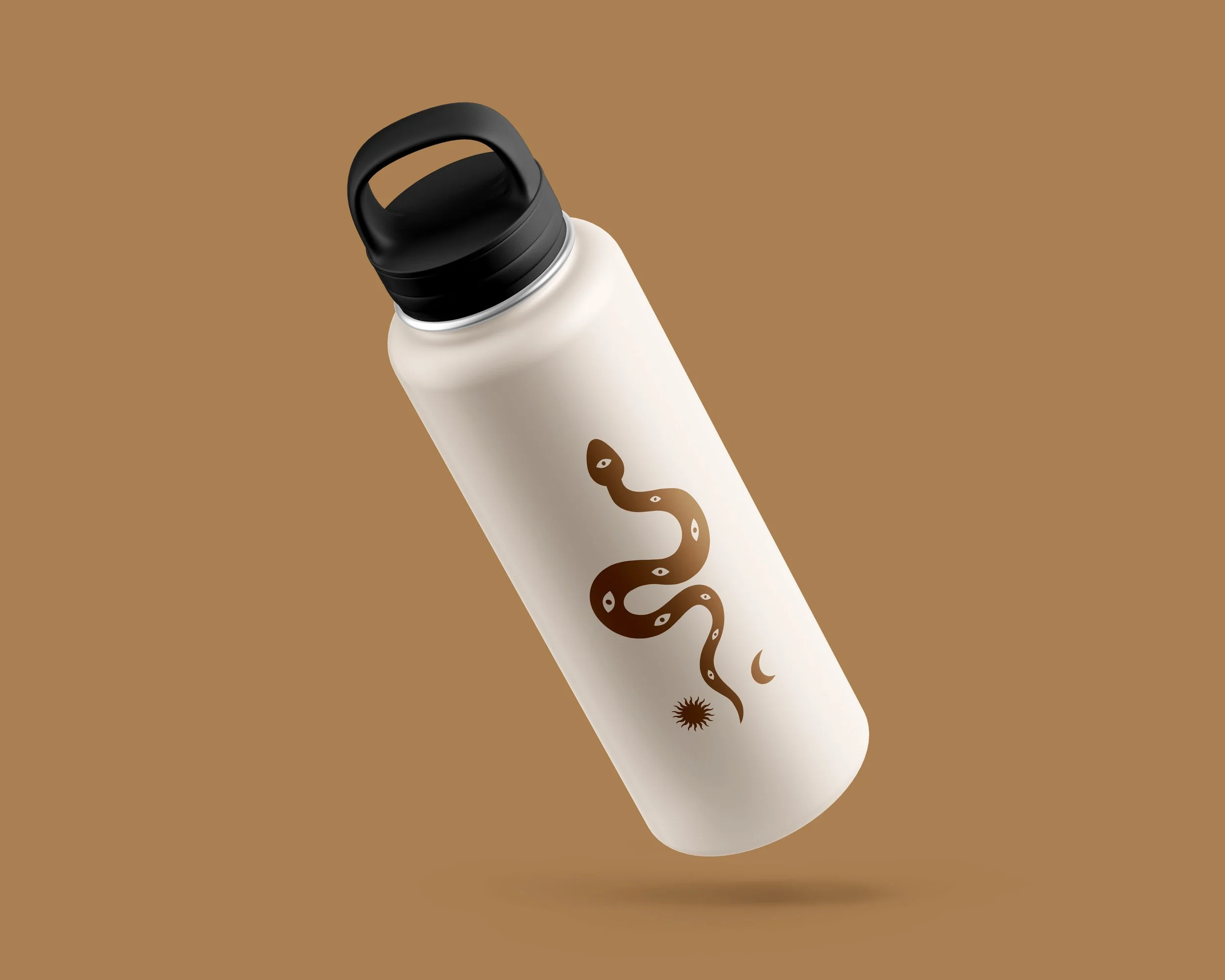 I developed the full brand identity incorporating symbolic motifs that reflect the philosophy of the practice. The evil eye represents protection, an invitation to cultivate inner vision and mindfulness. The snake symbolizes transformation, rebirth, and kundalini energy, aligning with the spiritual awakening often explored through yoga and Ayurveda. The sun and moon embody duality and balance — masculine and feminine, action and rest — which are core principles within holistic healing. These elements were woven thoughtfully into the logo system and visual language to create a mark that feels both sacred and contemporary.